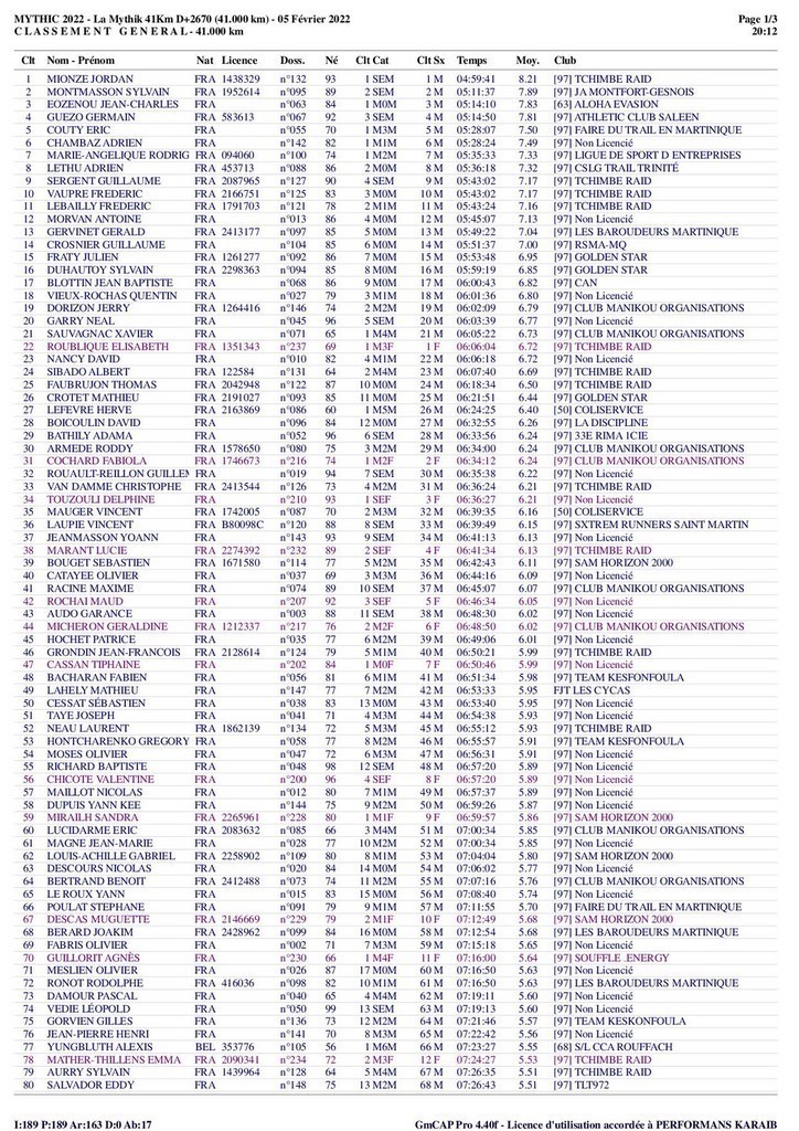 Résultats Mythik 2022