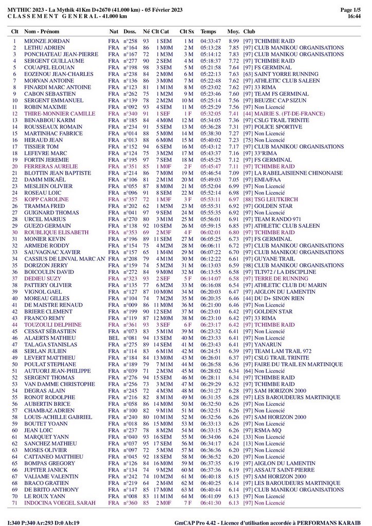 Résultats Mythik 2023