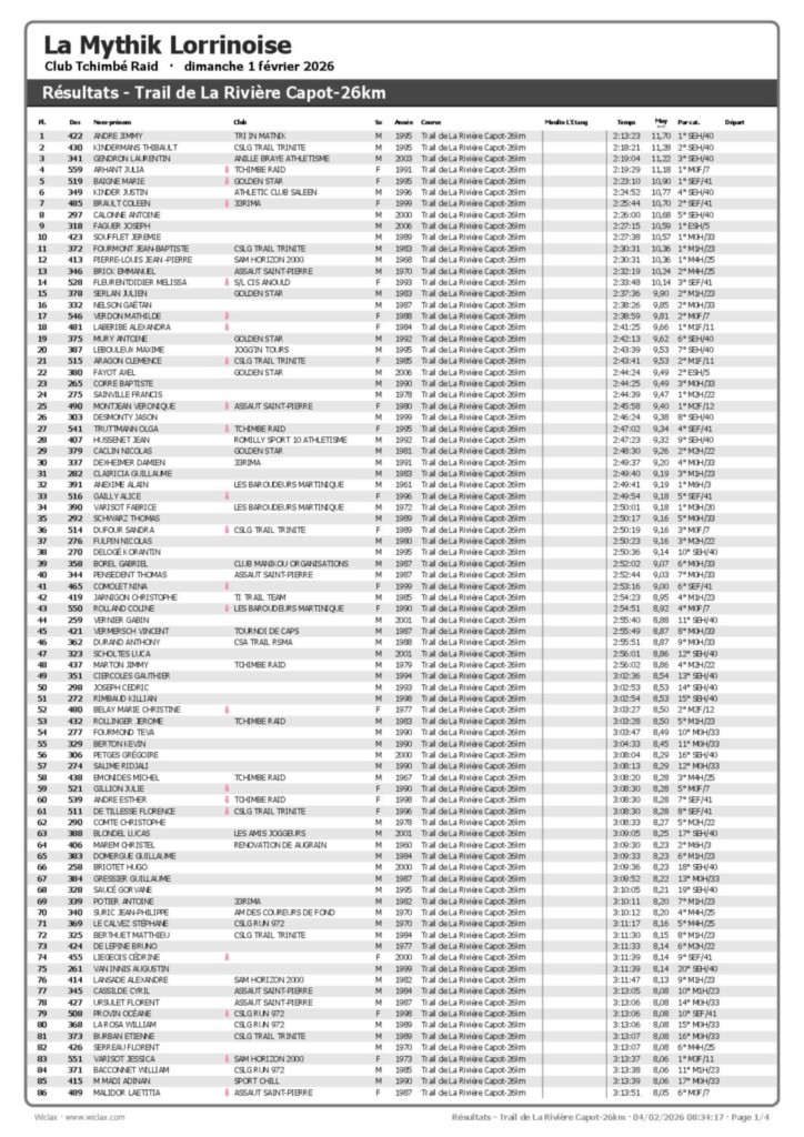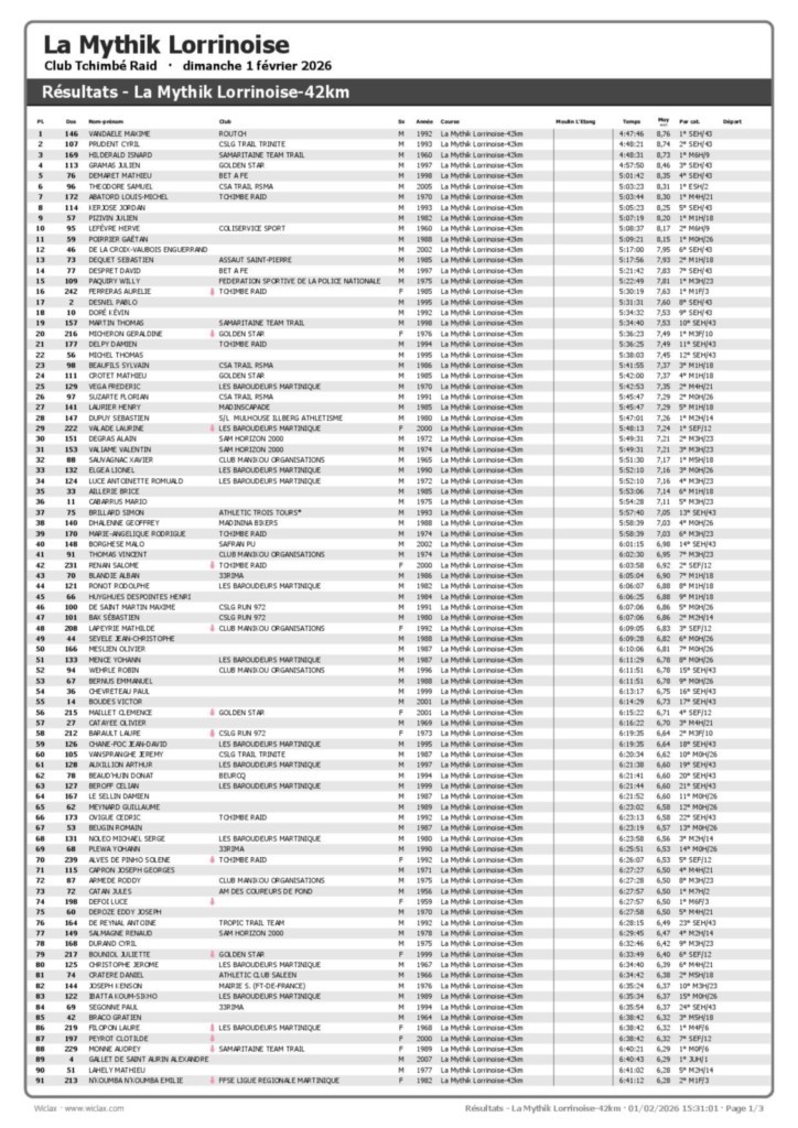 Résultats Mythik 2026